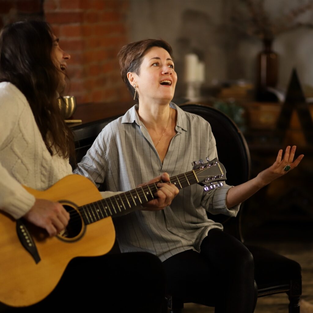 Мы собираемся небольшой группой в красивом уютном зале, чтобы освободить голос и почувствовать радость звучания. Атмосфера на таких встречах всегда душевная, все проходит легко, игриво, мягко и весело